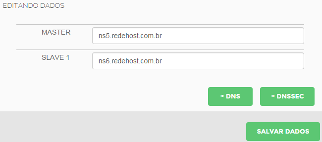 Informe suas DNS's e clique no botão "SALVAR DADOS".