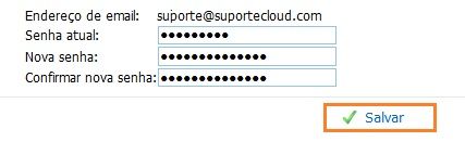 Insira a sua senha atual e logo abaixo a sua nova senha, confirme a nova senha e clique em